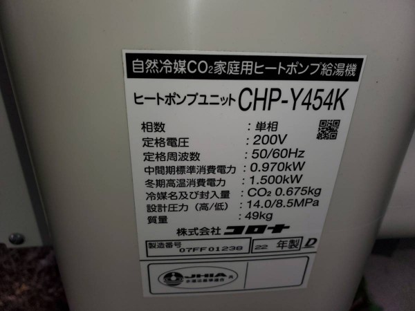 板野町唐園西川上 コロナ自然冷媒CO2家庭用ヒートポンプ給湯機 貯湯ユニットCTU-37AY5K,ヒートポンプユニットCHO-Y454K エコキュート交換工事|徳島県のエコキュート専門交換工事店|徳島エコキュート交換ショップ補助金対応可能