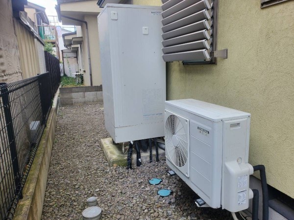 トップページ > 工事事例一覧 > 板野町犬伏池ノ下 ダイキン自然冷媒CO2・家庭用ヒートポンプ給湯機 ヒートポンプユニットRQW45WHV エコキュート交換工事