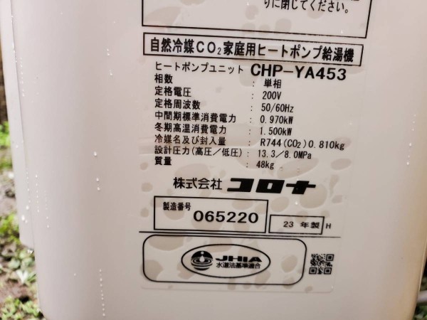 板野町川端千束 コロナ自然冷媒CO2家庭用ヒートポンプ給湯機 貯湯ユニットCTU-37SAY4、ヒートポンプユニットCHP-YA453 エコキュート交換工事|徳島県のエコキュート専門交換工事店|徳島エコキュート交換ショップ補助金対応可能