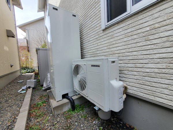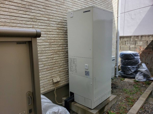 板野町唐園西川上 コロナ自然冷媒CO2家庭用ヒートポンプ給湯機 貯湯ユニットCTU-37AY5K、ヒートポンプユニットCHP-Y454K エコキュート交換工事
