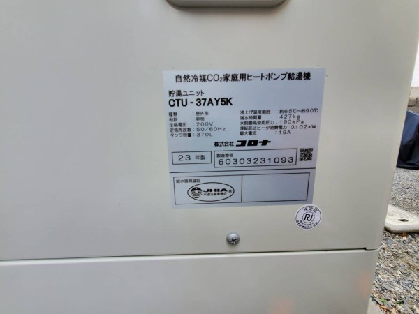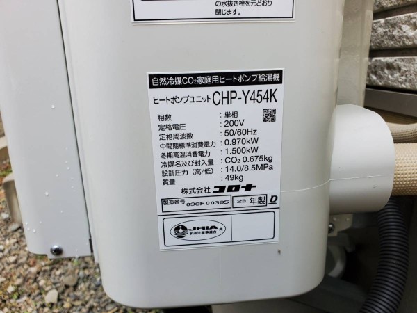 トップページ > 工事事例一覧 > 板野町唐園西川上 コロナ自然冷媒CO2家庭用ヒートポンプ給湯機 貯湯ユニットCTU-37AY5K、ヒートポンプユニットCHP-Y454K エコキュート交換工事