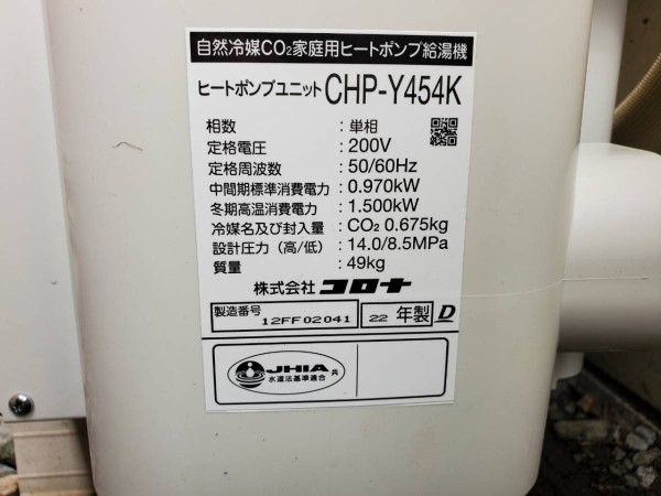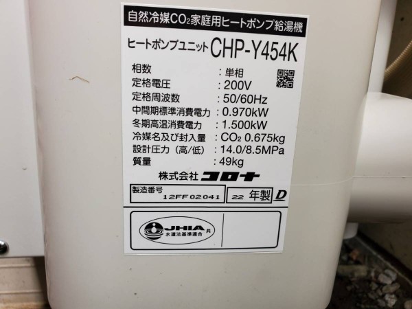板野町犬伏池ノ下 コロナ自然冷媒CO2家庭用ヒートポンプ給湯機 貯湯ユニットCTU-37AY5K、ヒートポンプユニットCHP-Y454K エコキュート交換工事