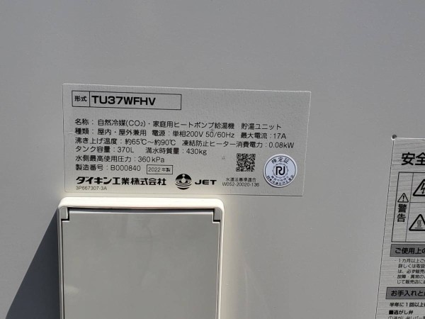 那賀町相名 ダイキン自然冷媒(CO2)・家庭用ヒートポンプ給湯機 貯湯ユニットTU37WFHV エコキュート交換工事|徳島県のエコキュート専門交換工事店|徳島エコキュート交換ショップ補助金対応可能