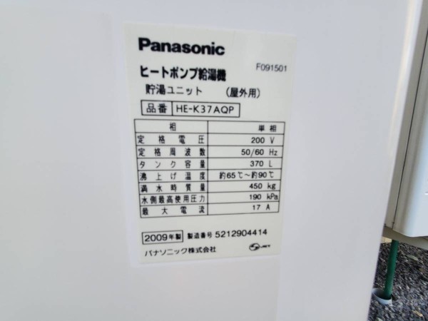 那賀町相名 パナソニックエコキュート→ダイキン自然冷媒(CO2)・家庭用ヒートポンプ給湯機 貯湯ユニットTU37WFHV エコキュート交換工事