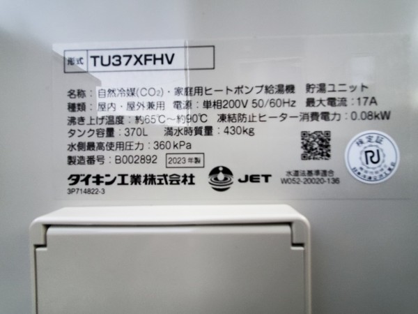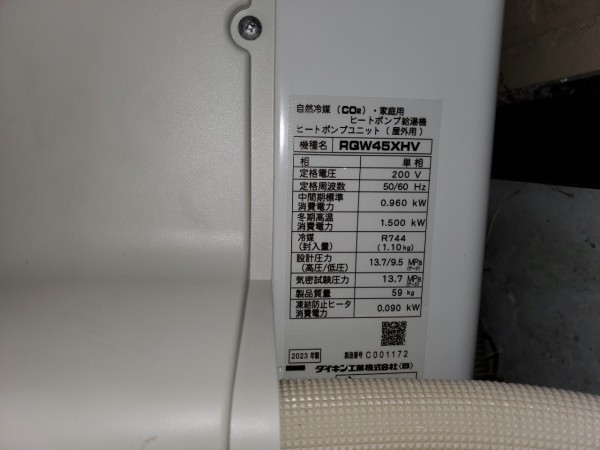 板野町犬伏池ノ下 ダイキン自然冷媒CO2家庭用ヒートポンプ給湯機ヒートポンプユニットRQW45XHV、貯湯ユニットTU37XFHV エコキュート交換工事