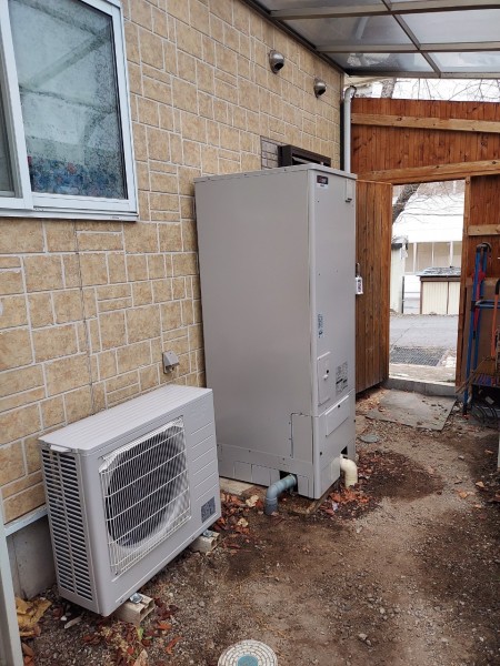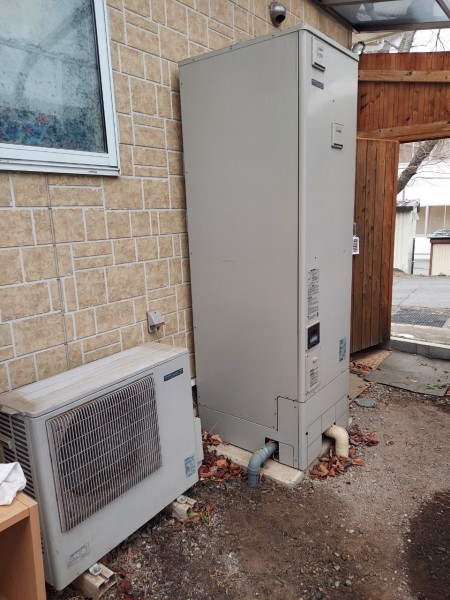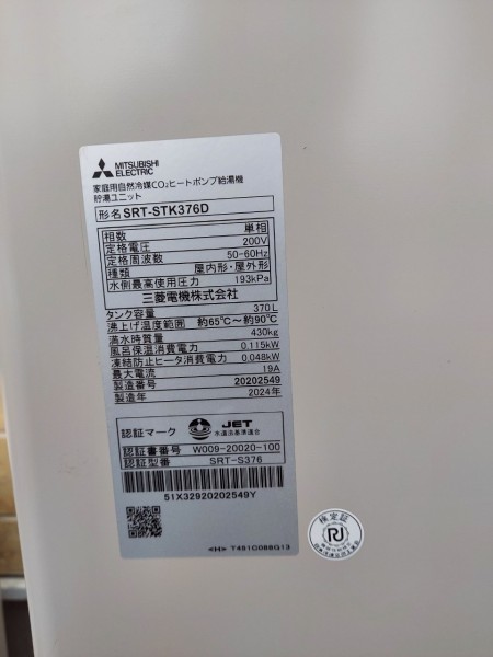 松茂町長岸 三菱電機エコキュート→三菱電機自然冷媒CO2家庭用ヒートポンプ給湯機貯湯ユニットSRT-STK376D、ヒートポンプユニット エコキュート交換工事