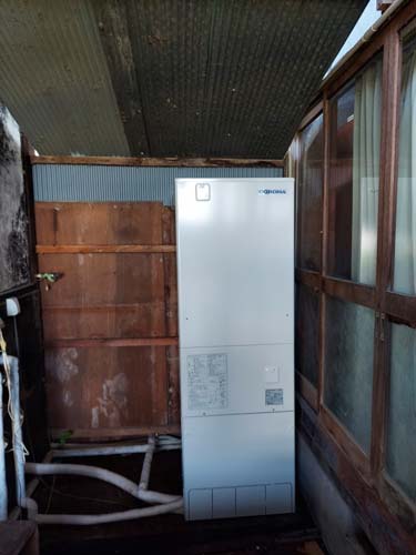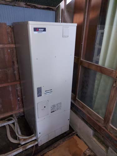 神山町4 三菱電機エコキュート→コロナ自然冷媒CO2家庭用ヒートポンプ給湯機 貯湯ユニットCTU-37AZ1K、ヒートポンプユニットCHP-DZ451K エコキュート交換工事
