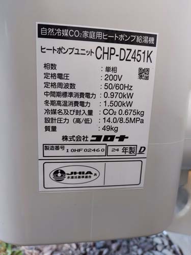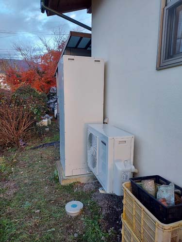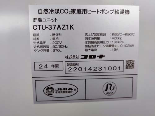 トップページ > 工事事例一覧 > 美波町木岐 コロナ自然冷媒CO2家庭用ヒートポンプ給湯機貯湯ユニットCTU-37AZ1K、ヒートポンプユニットCHP-DZ451K エコキュート交換工事