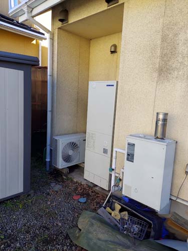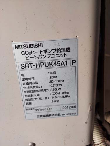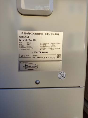 つるぎ町一宇蔭 三菱電機エコキュートSRT-HPUK45A1→コロナ自然冷媒CO2家庭用ヒートポンプ給湯機貯湯ユニットCTU-37AZ1K、ヒートポンプユニットCHP-DZ451K エコキュート交換工事