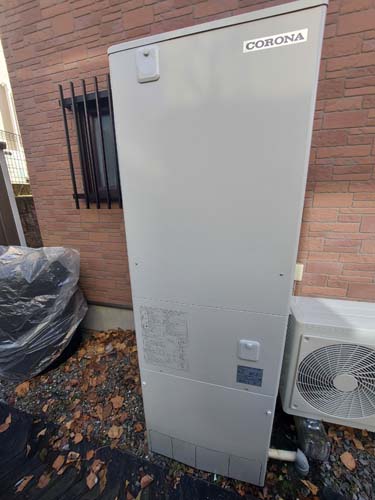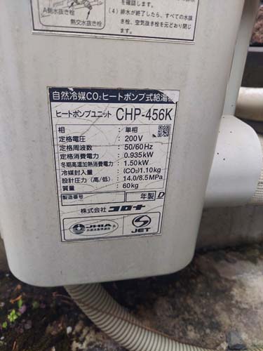 松茂町長岸 コロナ自然冷媒CO2家庭用ヒートポンプ給湯機 ヒートポンプユニットCHP-456K→コロナ自然冷媒CO2家庭用ヒートポンプ給湯機貯湯ユニットCTU-37AZ1K、ヒートポンプユニットCHP-DZ451K エコキュート交換工事