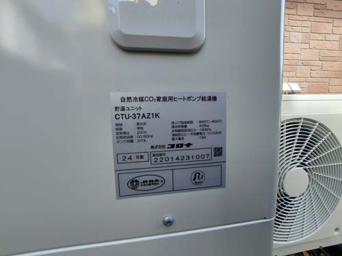 松茂町長岸 コロナ自然冷媒CO2家庭用ヒートポンプ給湯機貯湯ユニットCTU-37AZ1K、ヒートポンプユニットCHP-DZ451K エコキュート交換工事
