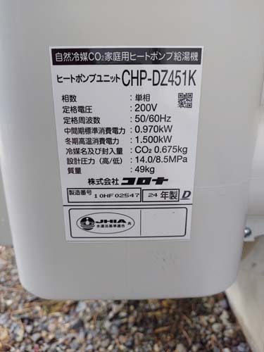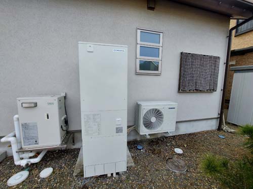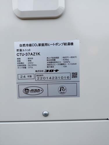 吉野川市山川町青木 Nationalヒートポンプ給湯機貯湯ユニットHE-37K2QK→コロナ自然冷媒CO2家庭用ヒートポンプ給湯機貯湯ユニットCTU-37AZ1K、ヒートポンプユニットCHP-DZ451K エコキュート交換工事