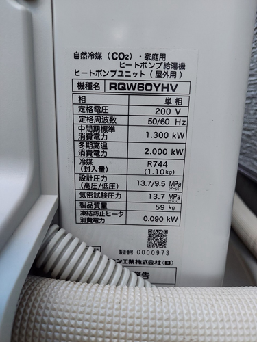 阿南市新野町馬場 ダイキン自然冷媒CO2家庭用ヒートポンプユニットRQW60YHV エコキュート交換工事|徳島県のエコキュート専門交換工事店|徳島エコキュート交換ショップ補助金対応可能