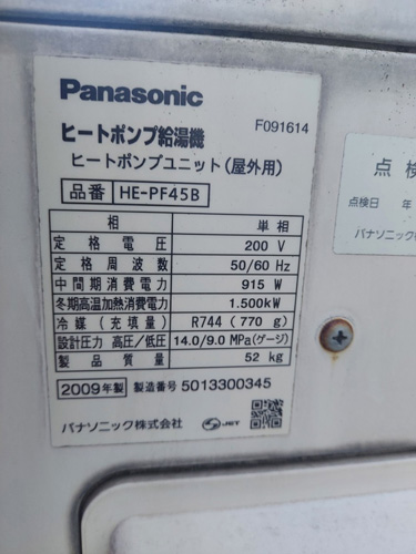 石井町浦庄国実 パナソニックヒートポンプ給湯機 ヒートポンプユニットHE-PF45B→コロナ自然冷媒CO2家庭用ヒートポンプ給湯機 ヒートポンプユニットCHP-DZ451K エコキュート交換工事