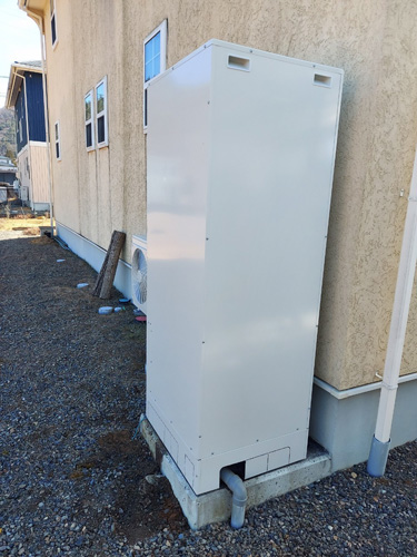 トップページ > 工事事例一覧 > 石井町浦庄国実 コロナ自然冷媒CO2家庭用ヒートポンプ給湯機 ヒートポンプユニットCHP-DZ451K エコキュート交換工事