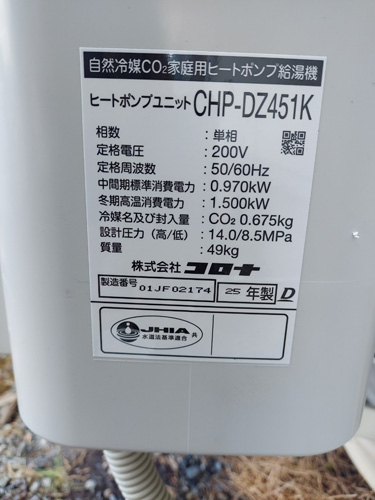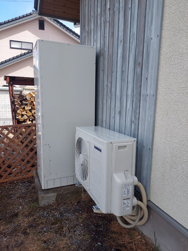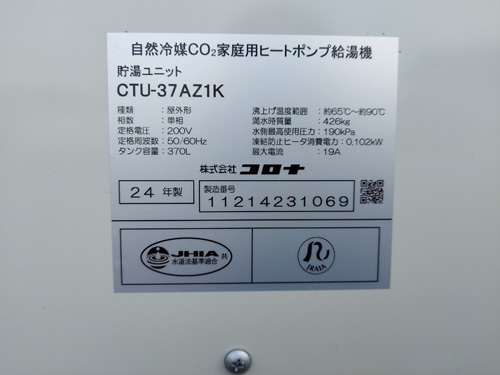 トップページ > 工事事例一覧 > 板野町唐園西川上 コロナ自然冷媒CO2家庭用ヒートポンプ給湯機貯湯ユニットCTU-37AZ1K、ヒートポンプユニットCHP-DZ451K エコキュート交換工事