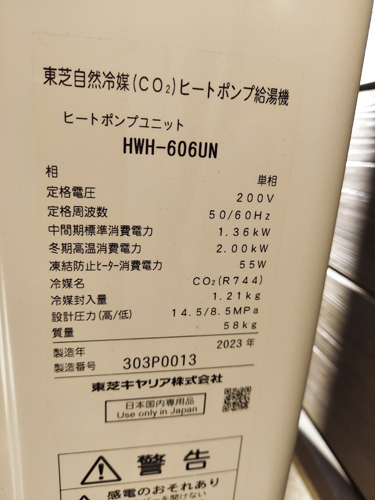 板野町川端千束 東芝自然冷媒CO2家庭用ヒートポンプ給湯機 ヒートポンプユニットHWH-606UN→コロナ自然冷媒CO2家庭用ヒートポンプ給湯機 ヒートポンプユニットCHP-DZ451K エコキュート交換工事