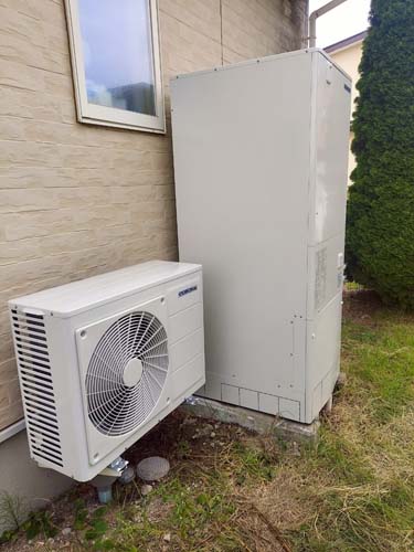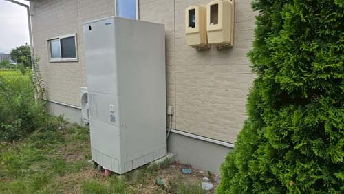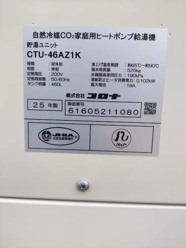 海陽町浅川片山 コロナ自然冷媒CO2家庭用ヒートポンプ給湯機 ヒートポンプユニットCHP-DZ601K、貯湯ユニットCTU-46AZ1K エコキュート交換工事